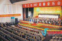 昨晚,市委宣传部和中国农业银行阳江分行在市委会堂举行2007年迎春音乐会。市委四套班子领导成员与400多名党代表一起欣赏音乐会。右图为江城区教育局合唱团演唱《唱支山歌给党听》等歌曲,由广州珠影交响乐团伴奏。 梁文栋 张健青 摄影报道