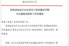 转发省农业厅办公室关于切实抓好早稻中后期病虫防控工作的通知