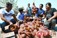 □首席摄影记者 王建成9月13日,确山县瓦岗镇邢店村,红薯种植大户刘金燕正在向商贩推销红薯。眼下,正是红薯收获、上市的时节,确山县瓦岗镇到处呈现出红薯生产的繁忙景象。瓦岗镇属浅山丘岭区,土壤富含钾、铁、锌等元素,当地群众自古就有种植红薯的传统,种出 的红薯口感面甜,营养丰富,很受人们青睐。