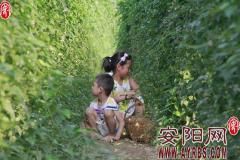 初秋,内黄县城关镇农民种植的山药长势良好,一片碧绿。近年,该镇加大农业种植结构调整力度,流转土地3000亩种植山药,成为农民脱贫增收的新宠。图为8月23日,两位小朋友在该镇丁庄村山药地里采收山药豆。(刘肖坤 摄)