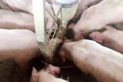 下表表明,出料口调整幅度最大化与最小化之间的差异最高可达18MTF(30~100kg阶段猪),相当于此时饲料价格上涨了14%。饲料转化率的差异为0.23或升高6.6%,表明粗心或懒于关注单料位饲喂器设定会完全降低湿喂/干喂饲喂器相对于简单且廉价干喂喂料器的经济优势。正确设定取决于喂料器的设计,因此应咨询生产商..