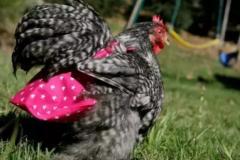 鸡尿不湿和鸡马鞍在美国,很多城市法律规定不能在院子里养鸡。或者条件非常苛刻。比如:鸡舍(coop)必须离房产地界至少100英尺(1英尺0.3米),每只鸡“室内面积”平均不能少于2平方英尺,冬天须有取暖设备。又比如:不可养公鸡(rooster),免得清晨过分卖力地叫人起床;养鸡前必须征得邻居同意;等等。照..