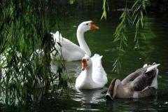 她有洁白的羽毛,憨憨身姿,大摇大摆昂首走来,兴趣所致“嘎嘎”几声,即使庭院深几许,此刻也不寂寥了。大白鹅正兴高采烈,在闲庭信步,看上去是那样的矫健,它的活力也震荡了每一个角落。世传有山阴道士养鹅,王羲之前往观摩鹅的形态,领略鹅的风采,高兴极了,为书写完《道德经》,他竟把鹅带回家中放养..