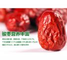 新疆骏枣——“红宝石”,果实大,果肩较小,果面光滑,果肉厚果皮薄,深红色。口感甘甜香脆, 是枣中极品。 产自世界水果优生区新疆,无污染沙化土壤,矿物质含量丰富,日照长,辐射强,积温高,温差大-----每天15小时的充足日照,昼夜20多度的温差.全年长达220天的无霜期,昆仑山终年冰川雪水的灌溉,得天独厚的自然条件适合大枣等果树的生长。也造就了骏枣的卓越品质,相对于同类产品,其果形大、皮薄、肉厚、口感甘甜醇厚、其维生素C、蛋白质、矿物质含量均高于同类产品、被誉为“中华第一枣”! 它初夏开花,九月果熟,树上宛如挂红玛瑙,流芳溢香,光彩夺目。一个个红艳艳,光亮亮,大者如核桃,群众称它为“红宝石”。 |